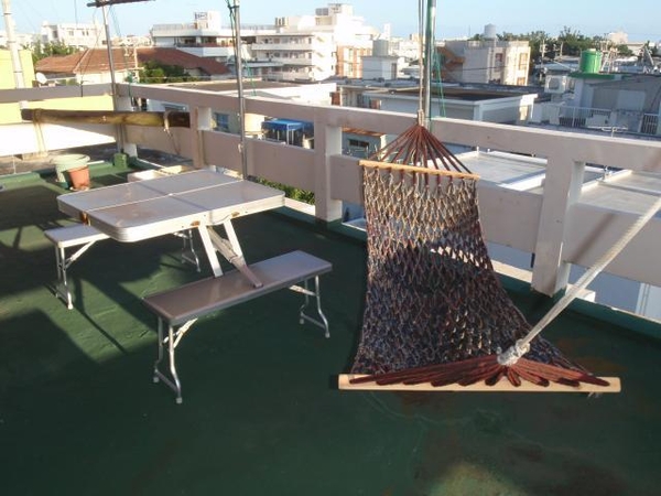 ただし夜は鍵がかかって取り出せないので、早朝出発の方はご注意ください。フロントには昼間の時間ジュース、さんぴん茶、泡盛の無料サービスがあります。外は暑いので水分補給に便利です。