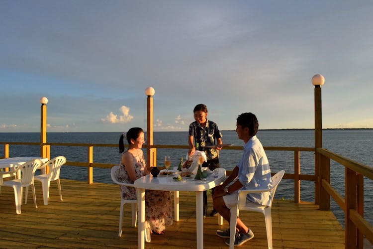 テラス席からビーチの距離は短く、さざ波の音が心地よいほど良く聴こえてくるでしょう。